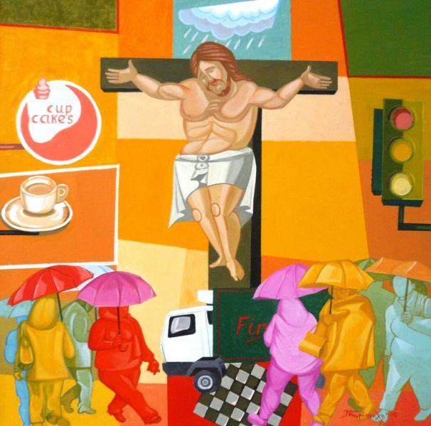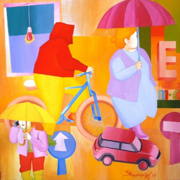 Το αστικό τοπίο έχει μια δομή και πολλές εκδοχές. Άλλες απ’ αυτές ο ζωγράφος τις θεωρεί δεδομένες και τις τονίζει και άλλες τις διαπραγματεύεται για να δημιουργήσει νέα σχήματα και οράματα, χρωματικές διαφυγές. Ανακαλύπτει μια αίσθηση της πόλης όχι ως μέσο για την αναμόρφωση της κοινωνίας ή ως επίκαιρη μορφή μιας ιδανικής λύσης, αλλά ως μια σκηνή γεμάτη σύμβολα που διασταυρώνεται με τα ίχνη της ανθρώπινης δραστηριότητας. Η αίσθηση αυτή, με την πλούσια χρωματική γκάμα του καλλιτέχνη μετουσιώνεται σε γνώριμο τόπο που οριοθετείται από παιχνίδια, από πλήθη, από ΜΜΕ, από διαφημίσεις και μόδα.